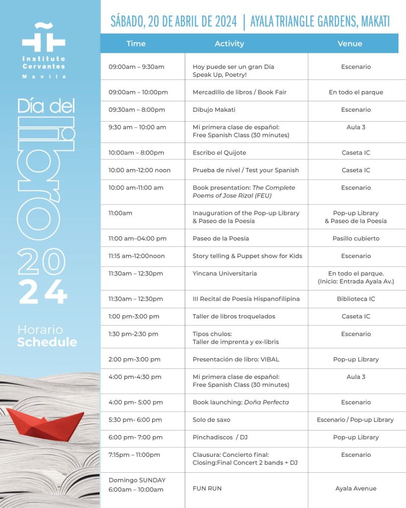 The annual World Book Day event organized by Instituto Cervantes de Manila is back! After 2023’s venue at Intramuros, this year it returns to the more familiar Ayala Triangle Gardens.