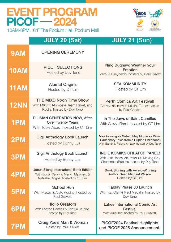 ~ PICOF2024 is organized by Komiket, and supported by the Office of Senator Loren Legarda, the National Commission for Culture and the Arts, and the National Book Development Board of the Philippines.